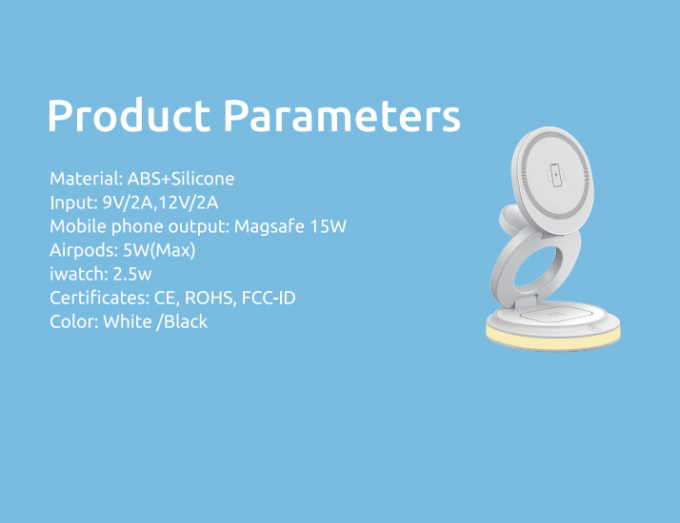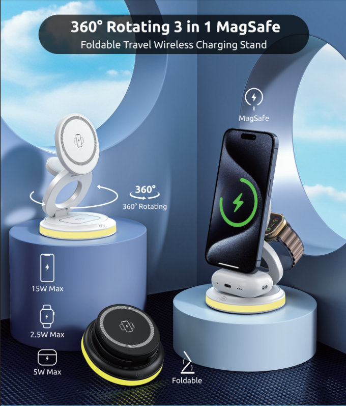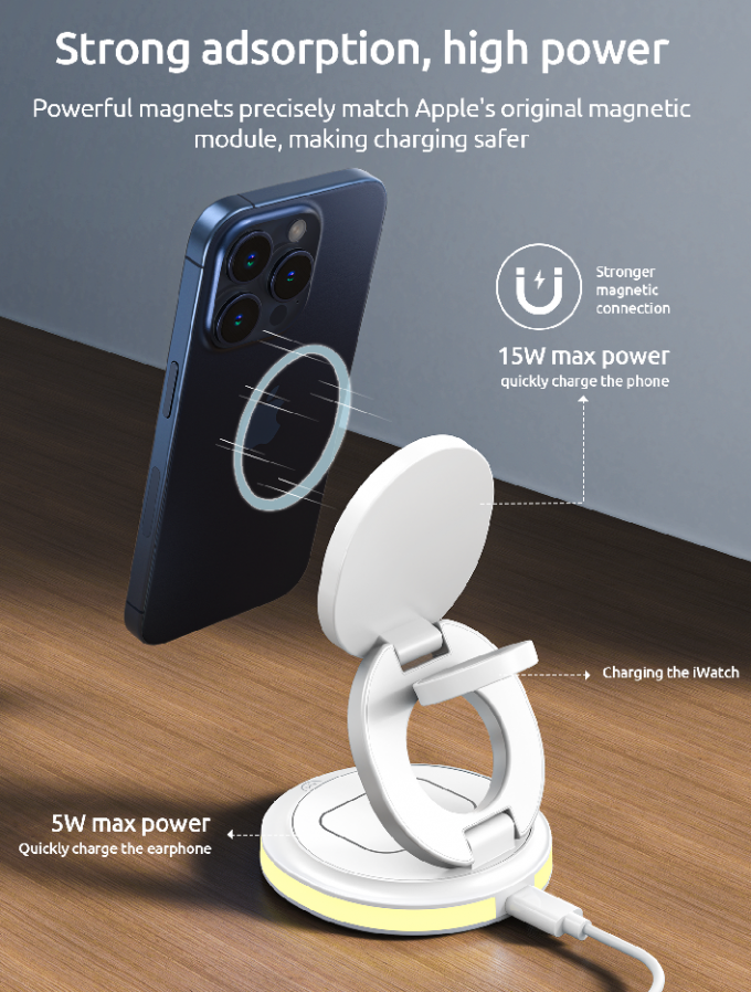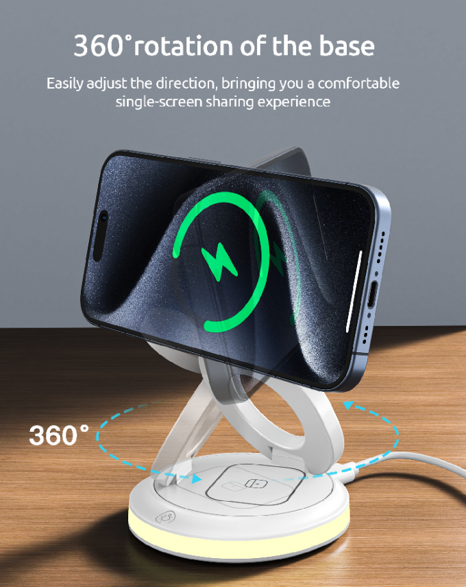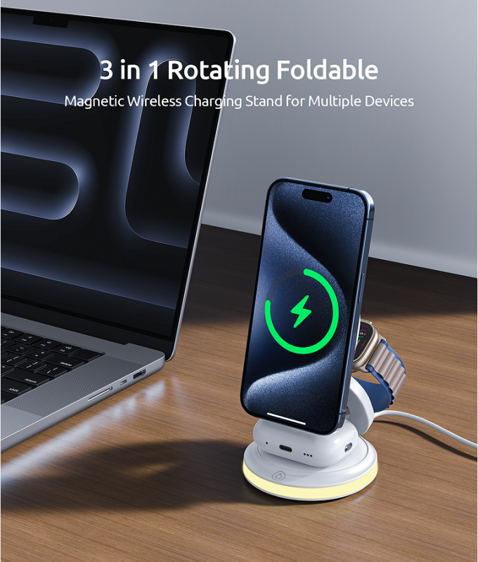 Nightlight Rotating 3 in 1 Magnetic Wireless Charger Stand( Foldable)