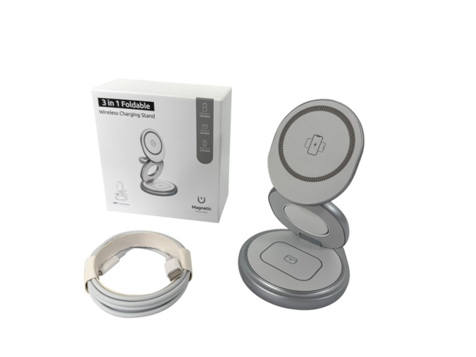 Qi2 3 In 1 Folding Metal Wireless Charger 360 Degrees Rotating Fast Charging Station