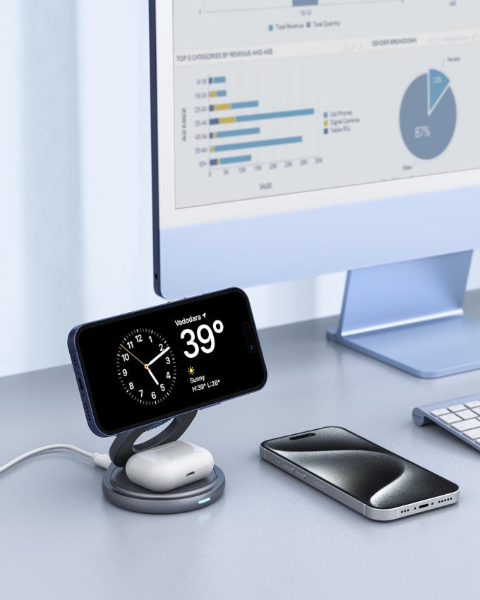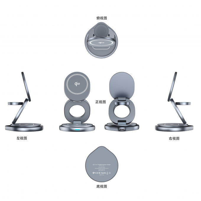 Qi2 3in1 360 degrees Rotation Folding Magnetic Wireless Stand